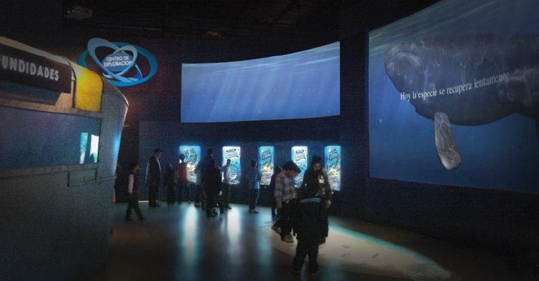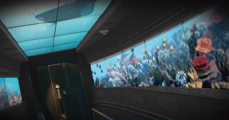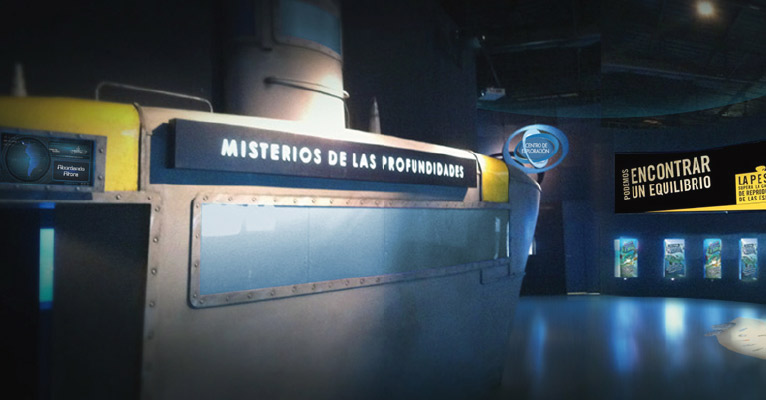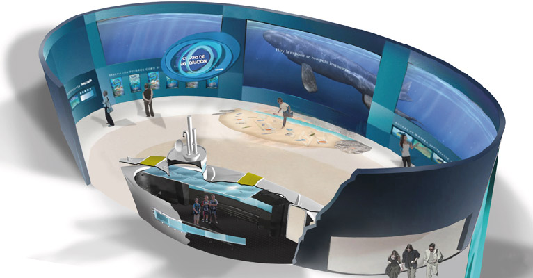 Tratamiento de muros con vinilo impreso en “Centro de Exploración Acuática Temaikén”. Construcción y ambientación del submarino.